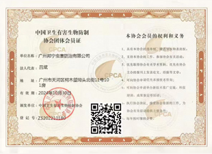 中國衛生有害生物防制協會團體會員證