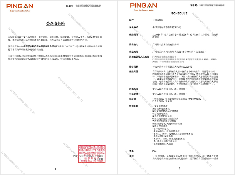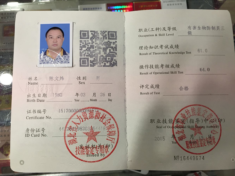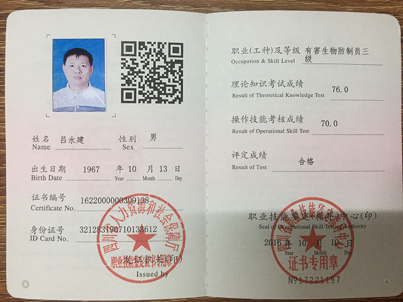 • 蟲控技師均具備國家頒發的服務資格證