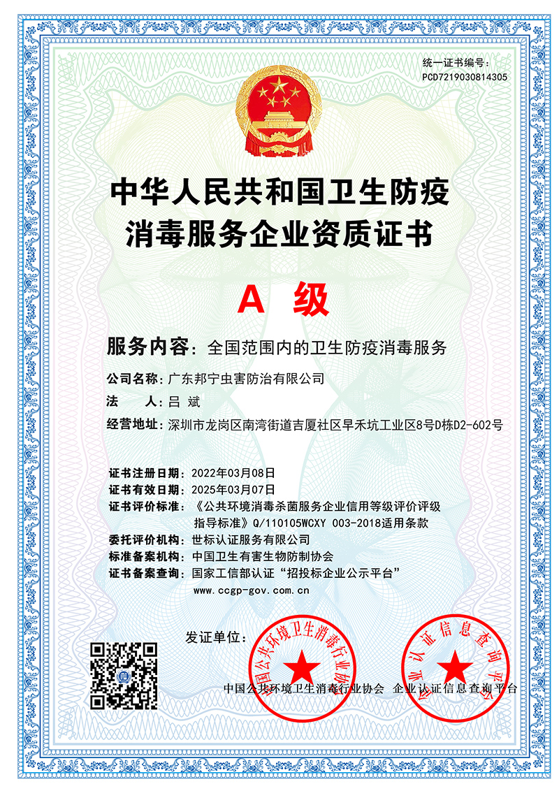 消毒服務企業資質證書